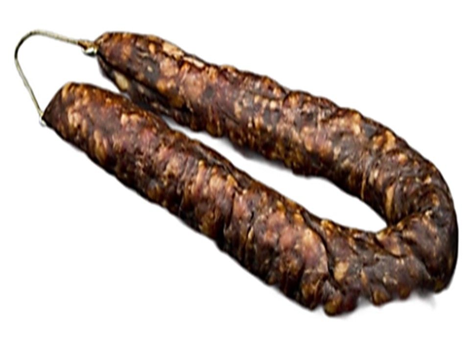 Composition : Poitrine de porc, foie de porc 35%, gorge de porc, dextrose, sel, vin rouge AOC, ferments de maturation, épices et aromates, sirop de glucose, conservateur E252, boyau naturel.