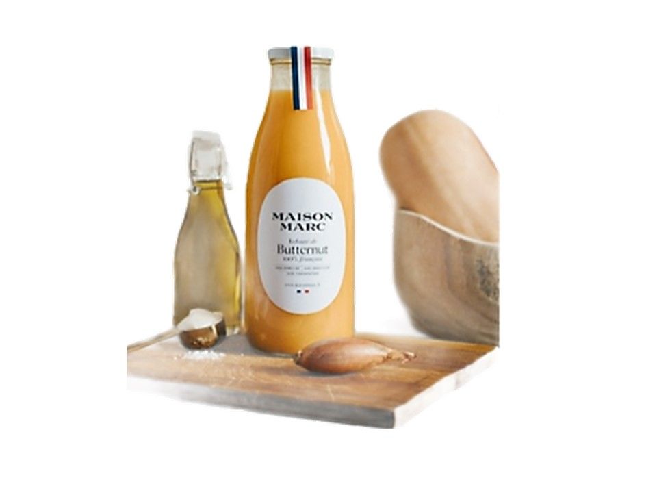 Découvrez le velouté de butternut Maison Marc, une soupe réconfortante cuisinée avec les courges de notre potager le plus naturellement possible avec une pointe de sel et d'huile d'olive.