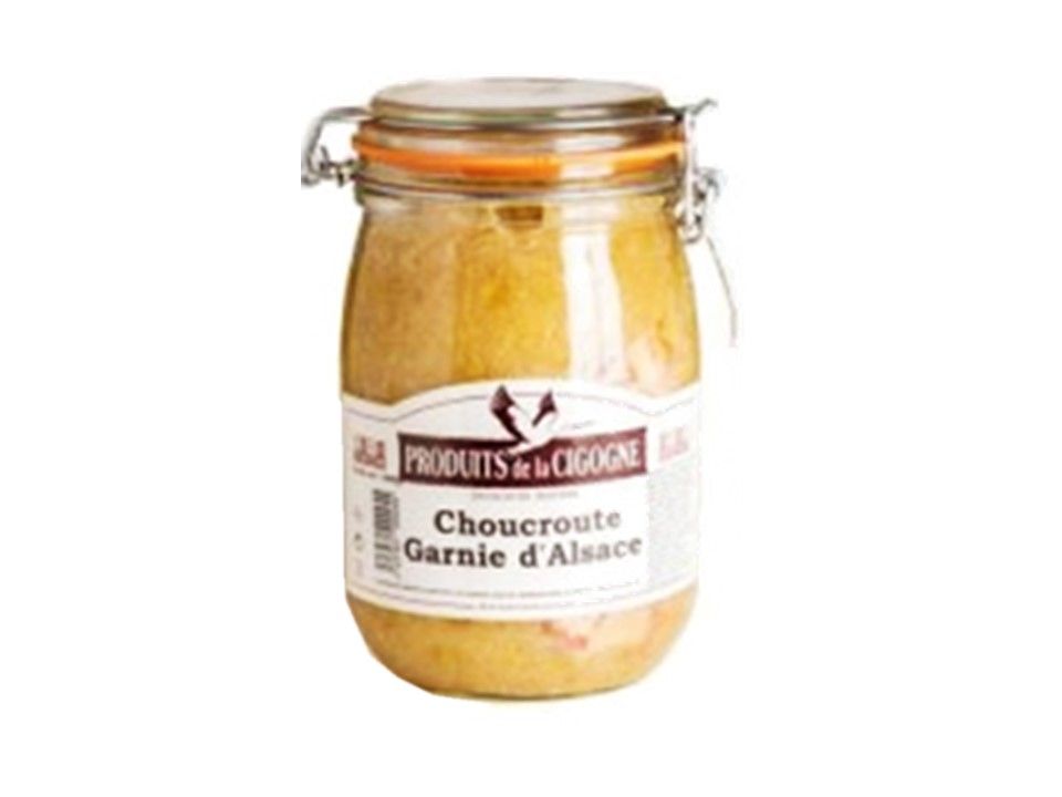 Viande de porc fumée, lard fumé, saucisses fumée et knack (porc, bœuf, boyaux naturels, épices), sel nitrité, choucroute, oignons, Vin blanc d Alsace, Ail, Saindoux, baies de genièvre, poivre, coriandre, carvi, laurier, clou de girofle.